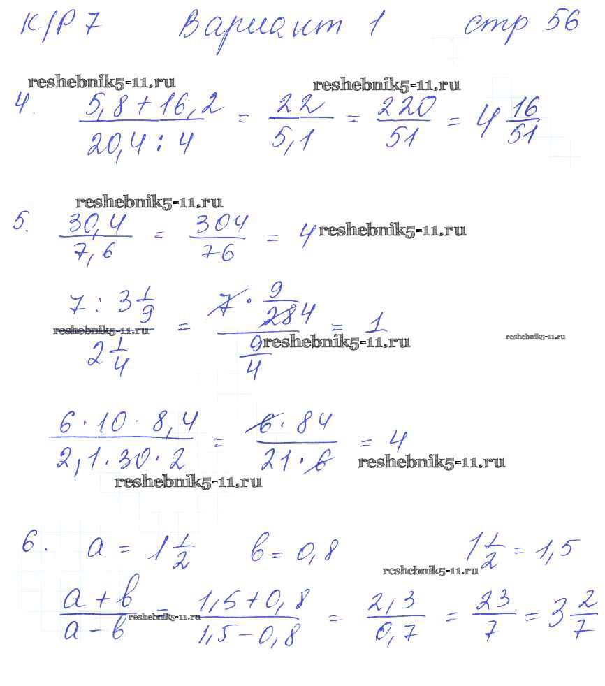 Готовая домашняя работа с ответами по Математике за 6 класс Рудницкая Рабочая тетрадь УМК Часть 1, 2 Экзамен 2013 ФГОС - Часть 1. Страницы 56