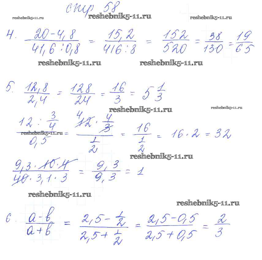 Готовая домашняя работа с ответами по Математике за 6 класс Рудницкая Рабочая тетрадь УМК Часть 1, 2 Экзамен 2013 ФГОС - Часть 1. Страницы 58