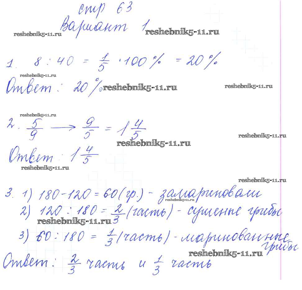Готовая домашняя работа с ответами по Математике за 6 класс Рудницкая Рабочая тетрадь УМК Часть 1, 2 Экзамен 2013 ФГОС - Часть 1. Страницы 63