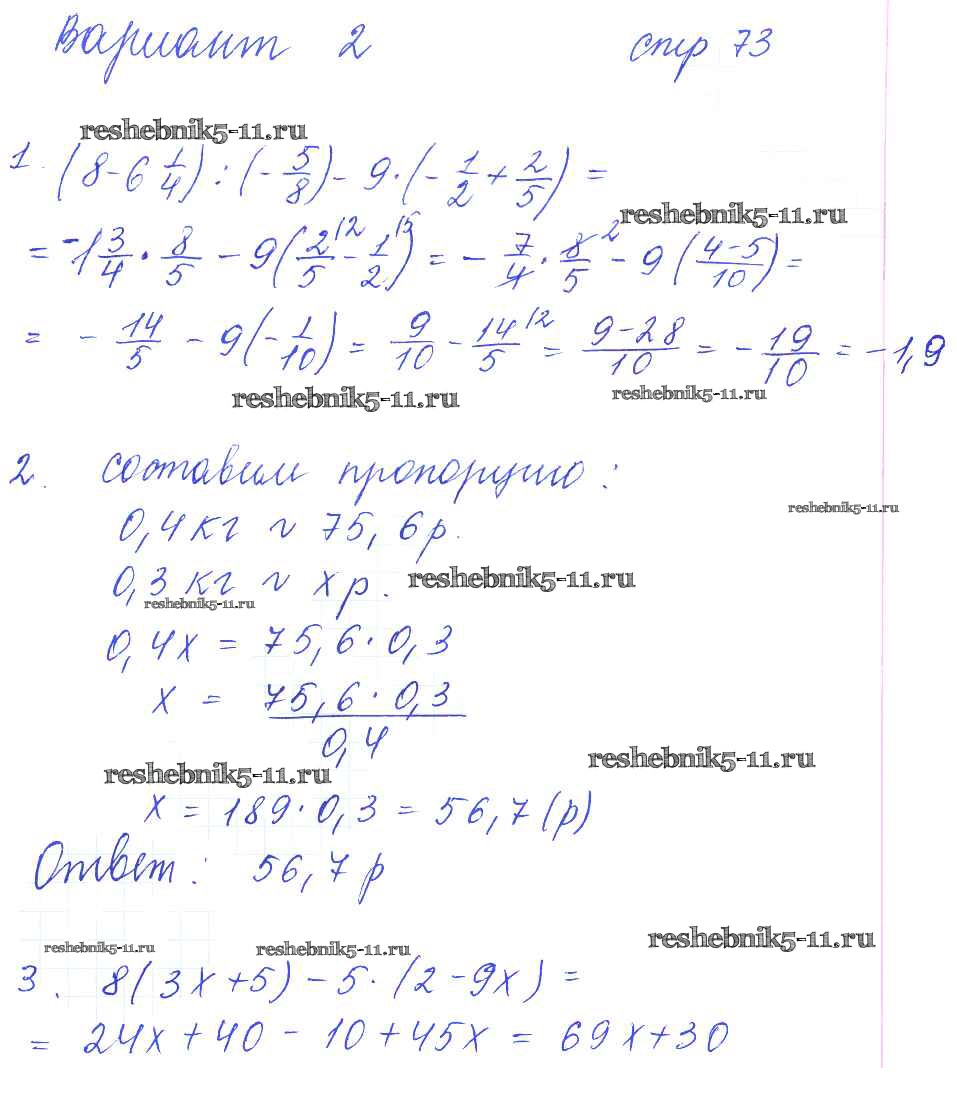 Готовая домашняя работа с ответами по Математике за 6 класс Рудницкая Рабочая тетрадь УМК Часть 1, 2 Экзамен 2013 ФГОС - Часть 2. Страницы 73