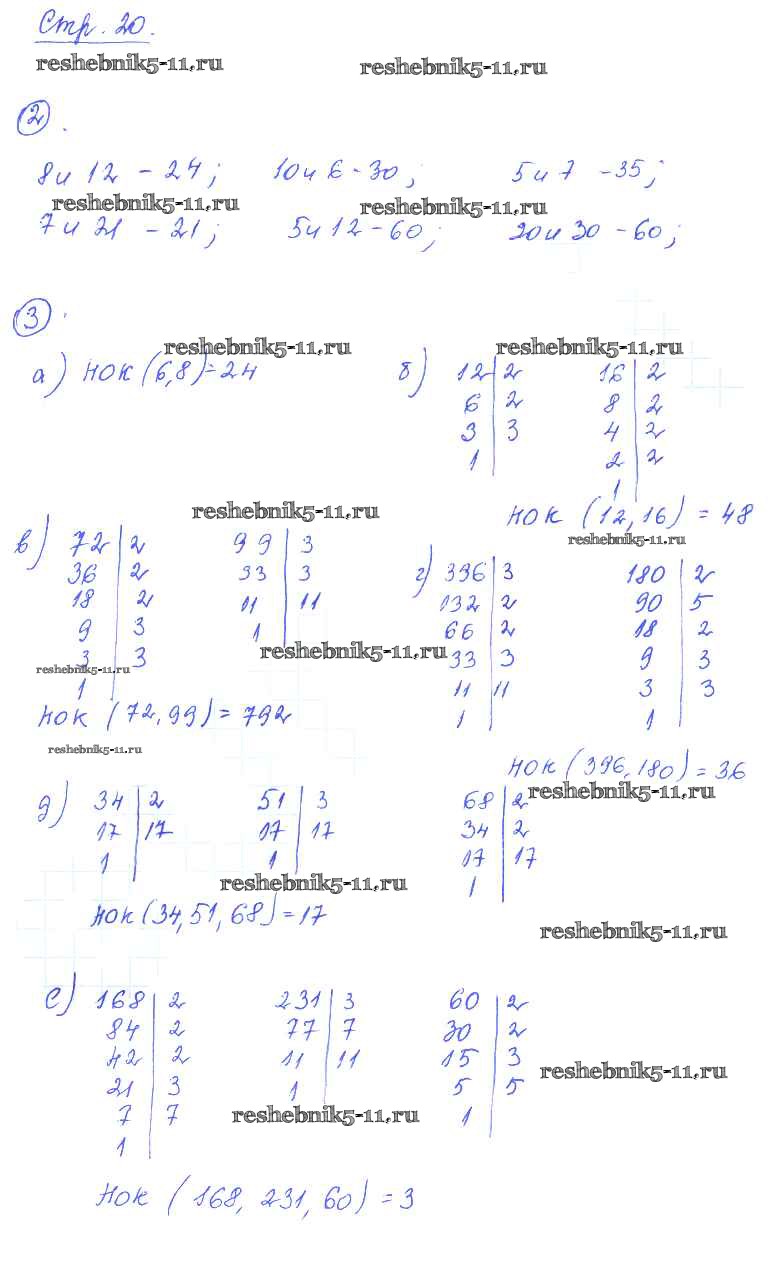 Готовая домашняя работа с ответами по Математике за 6 класс Рудницкая Рабочая тетрадь УМК Часть 1, 2 Мнемозина 2013 ФГОС - Часть 1. Страницы 20