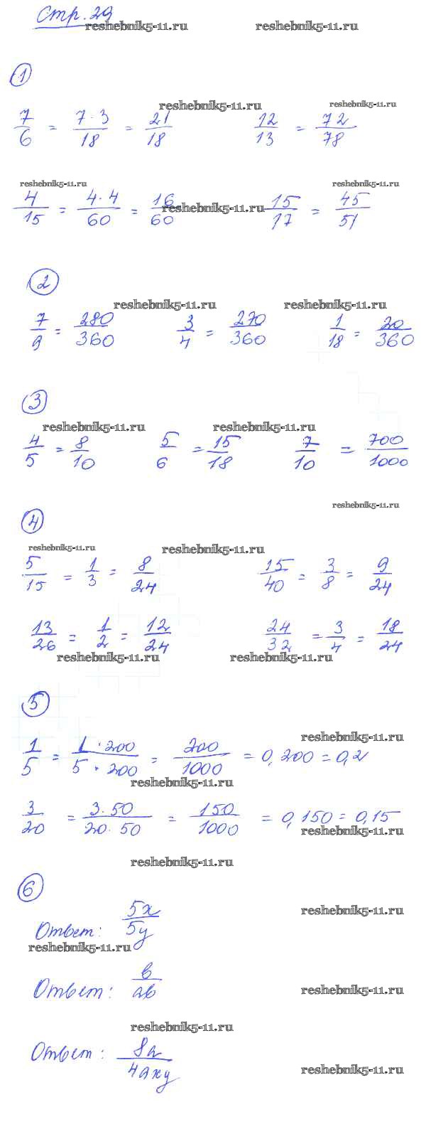 Готовая домашняя работа с ответами по Математике за 6 класс Рудницкая Рабочая тетрадь УМК Часть 1, 2 Мнемозина 2013 ФГОС - Часть 1. Страницы 29