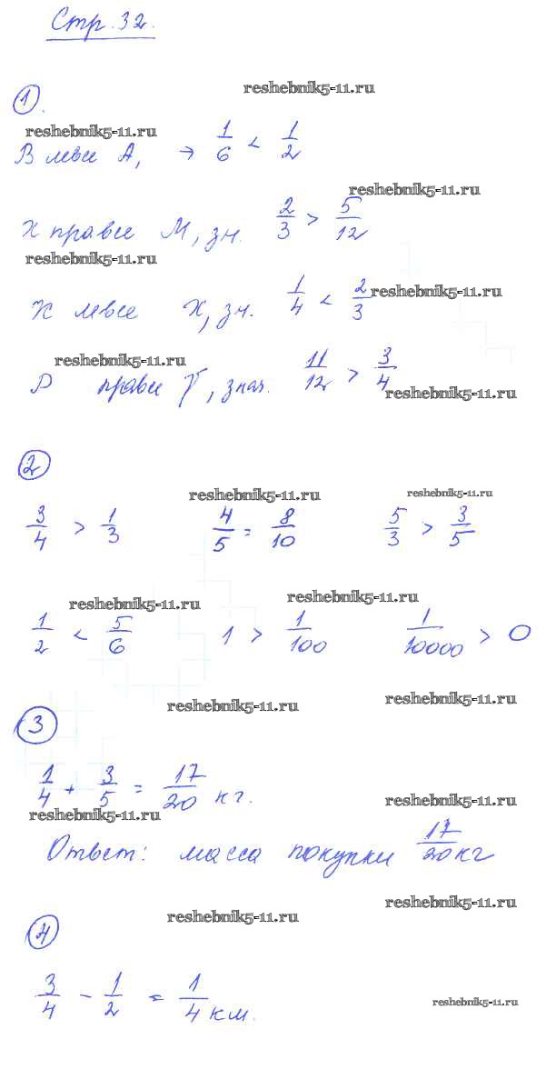 Готовая домашняя работа с ответами по Математике за 6 класс Рудницкая Рабочая тетрадь УМК Часть 1, 2 Мнемозина 2013 ФГОС - Часть 1. Страницы 32