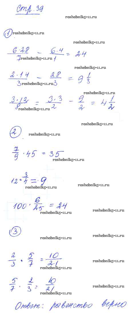 Готовая домашняя работа с ответами по Математике за 6 класс Рудницкая Рабочая тетрадь УМК Часть 1, 2 Мнемозина 2013 ФГОС - Часть 1. Страницы 39