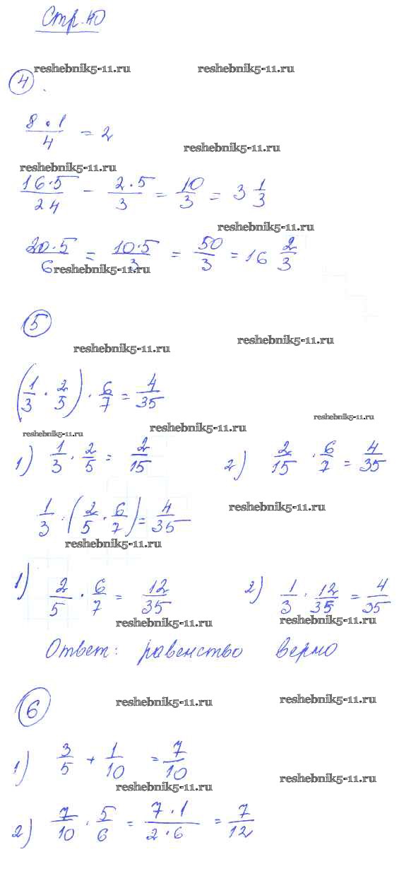 Готовая домашняя работа с ответами по Математике за 6 класс Рудницкая Рабочая тетрадь УМК Часть 1, 2 Мнемозина 2013 ФГОС - Часть 1. Страницы 40