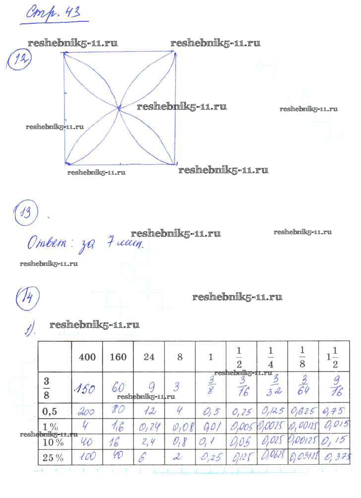 Готовая домашняя работа с ответами по Математике за 6 класс Рудницкая Рабочая тетрадь УМК Часть 1, 2 Мнемозина 2013 ФГОС - Часть 1. Страницы 43