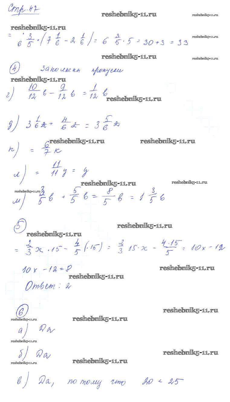 Готовая домашняя работа с ответами по Математике за 6 класс Рудницкая Рабочая тетрадь УМК Часть 1, 2 Мнемозина 2013 ФГОС - Часть 1. Страницы 47