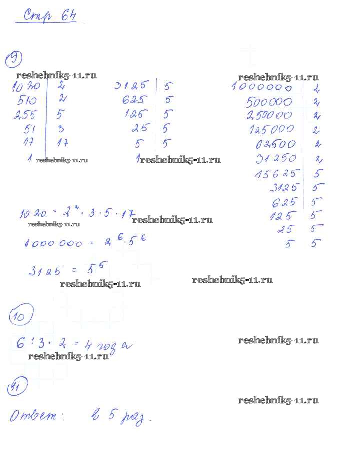 Готовая домашняя работа с ответами по Математике за 6 класс Рудницкая Рабочая тетрадь УМК Часть 1, 2 Мнемозина 2013 ФГОС - Часть 1. Страницы 64