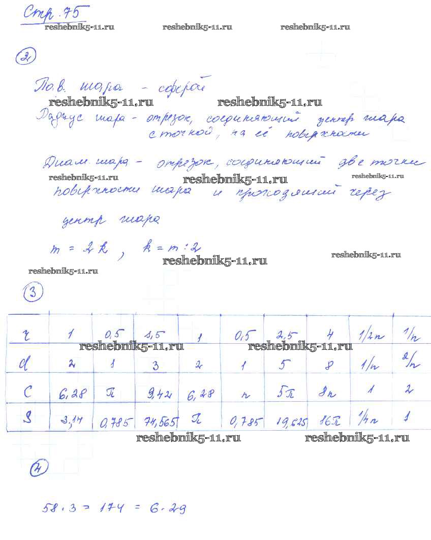 Готовая домашняя работа с ответами по Математике за 6 класс Рудницкая Рабочая тетрадь УМК Часть 1, 2 Мнемозина 2013 ФГОС - Часть 1. Страницы 75