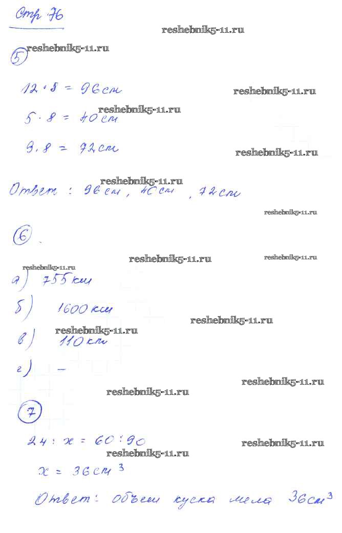 Готовая домашняя работа с ответами по Математике за 6 класс Рудницкая Рабочая тетрадь УМК Часть 1, 2 Мнемозина 2013 ФГОС - Часть 1. Страницы 76