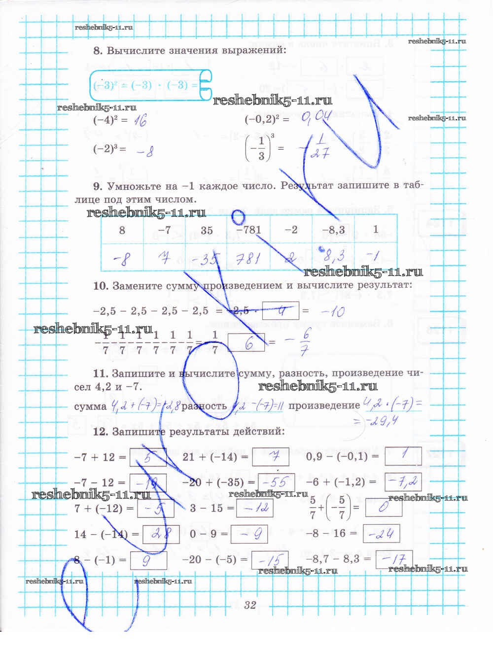 Готовая домашняя работа с ответами по Математике за 6 класс Рудницкая Рабочая тетрадь УМК Часть 1, 2 Мнемозина 2013 ФГОС - Часть 2. Страницы 32