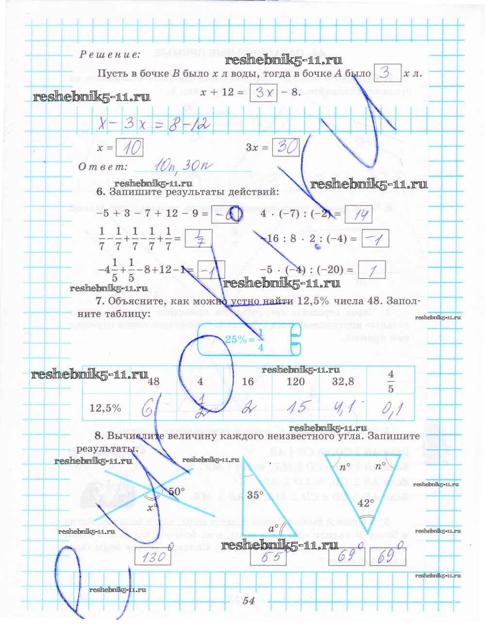 Готовая домашняя работа с ответами по Математике за 6 класс Рудницкая Рабочая тетрадь УМК Часть 1, 2 Мнемозина 2013 ФГОС - Часть 2. Страницы 54