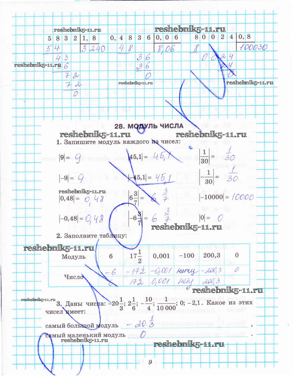 Готовая домашняя работа с ответами по Математике за 6 класс Рудницкая Рабочая тетрадь УМК Часть 1, 2 Мнемозина 2013 ФГОС - Часть 2. Страницы 9