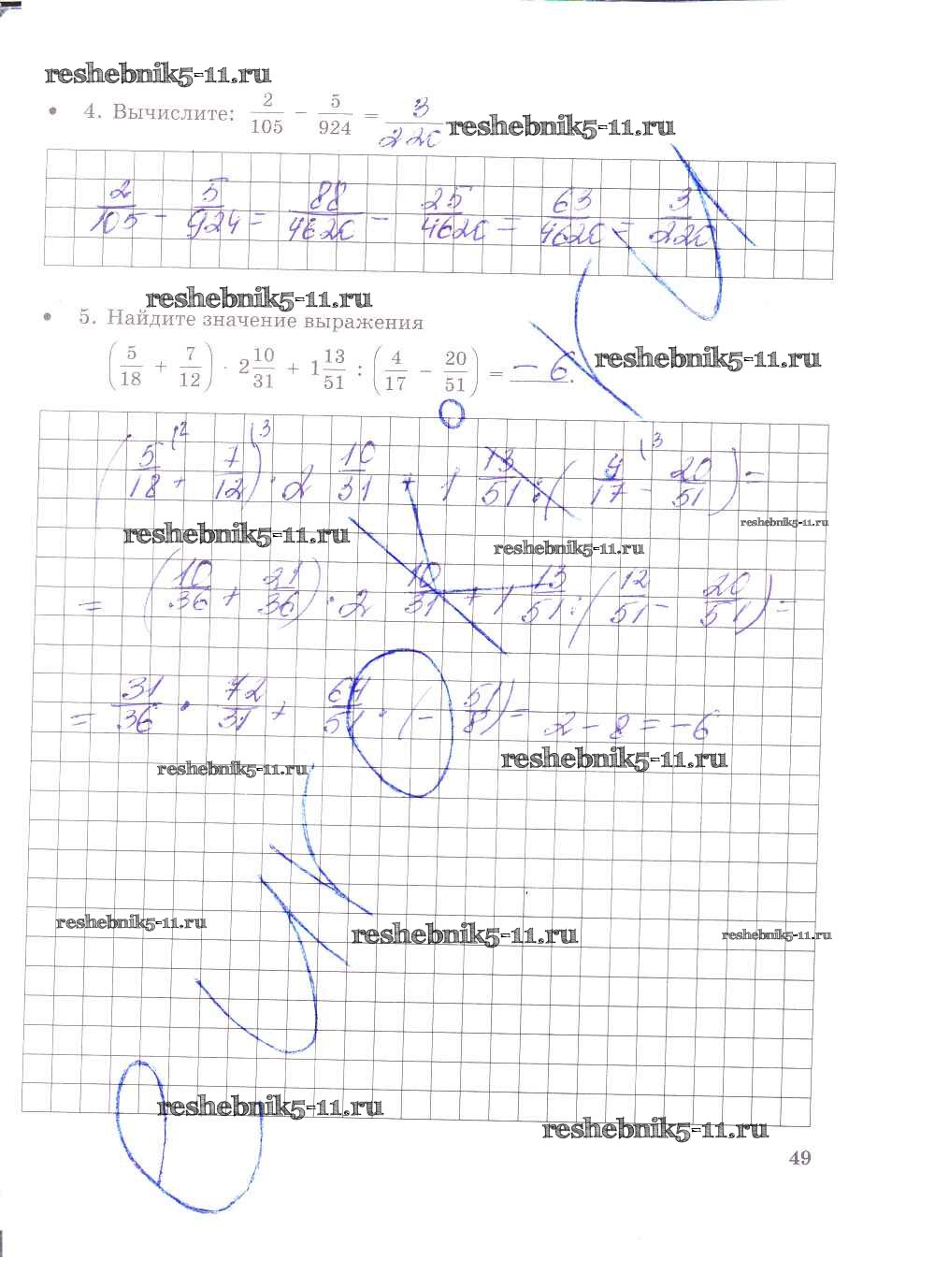 Готовая домашняя работа с ответами по Математике за 6 класс Зубарева, Лепешонкова Тетрадь для контрольных работ Часть 1, 2 Мнемозина 2020 ФГОС - Часть 1. Страницы 49