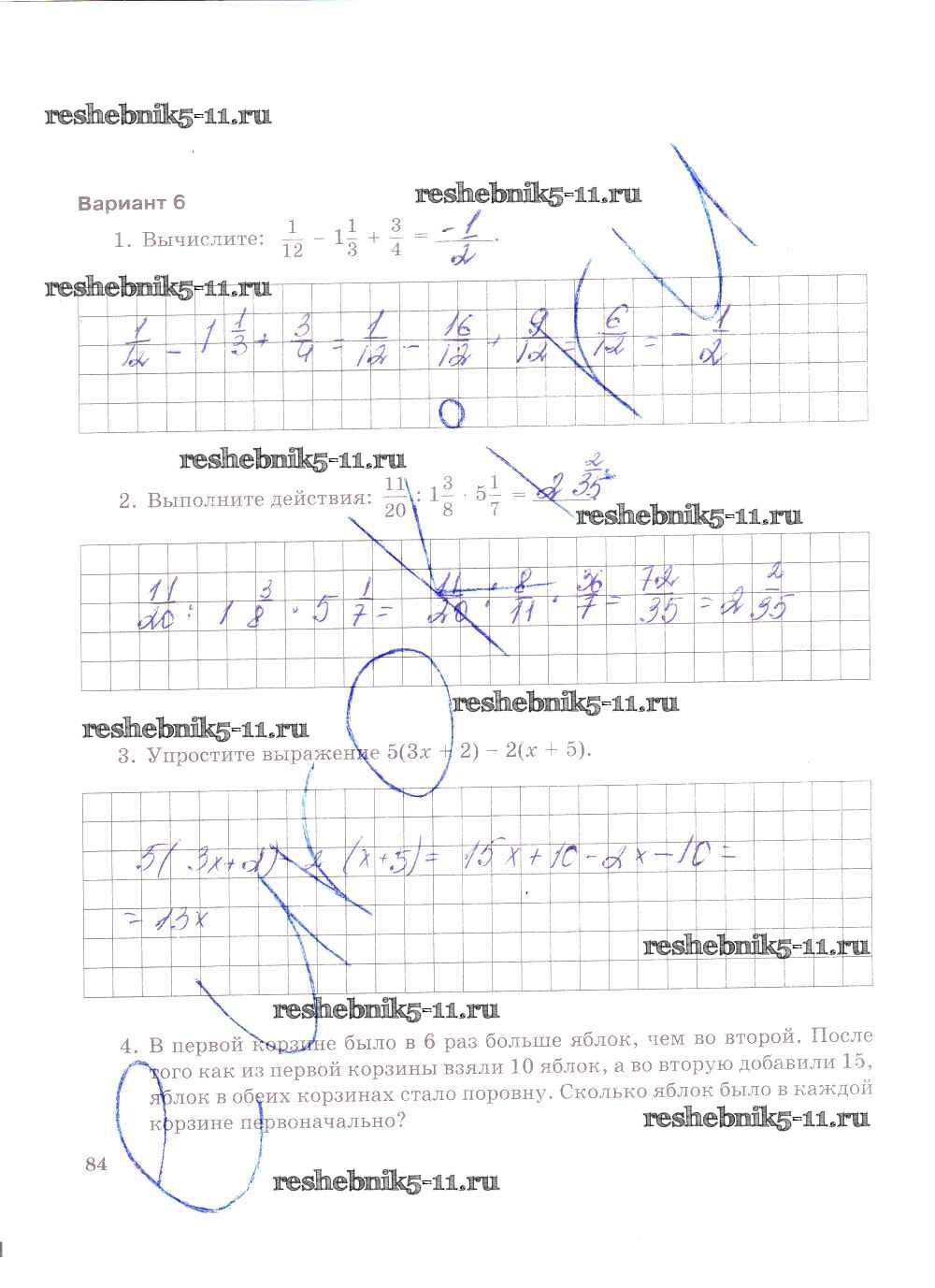 Готовая домашняя работа с ответами по Математике за 6 класс Зубарева, Лепешонкова Тетрадь для контрольных работ Часть 1, 2 Мнемозина 2020 ФГОС - Часть 1. Страницы 84