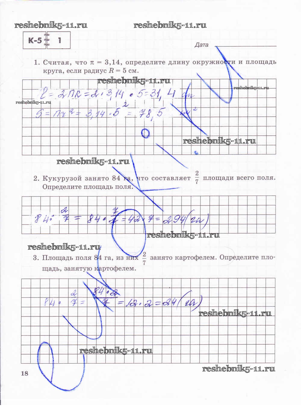 Математика за 6 класс Зубарева Тетрадь для контрольных работ Мнемозина часть 2. страница 18