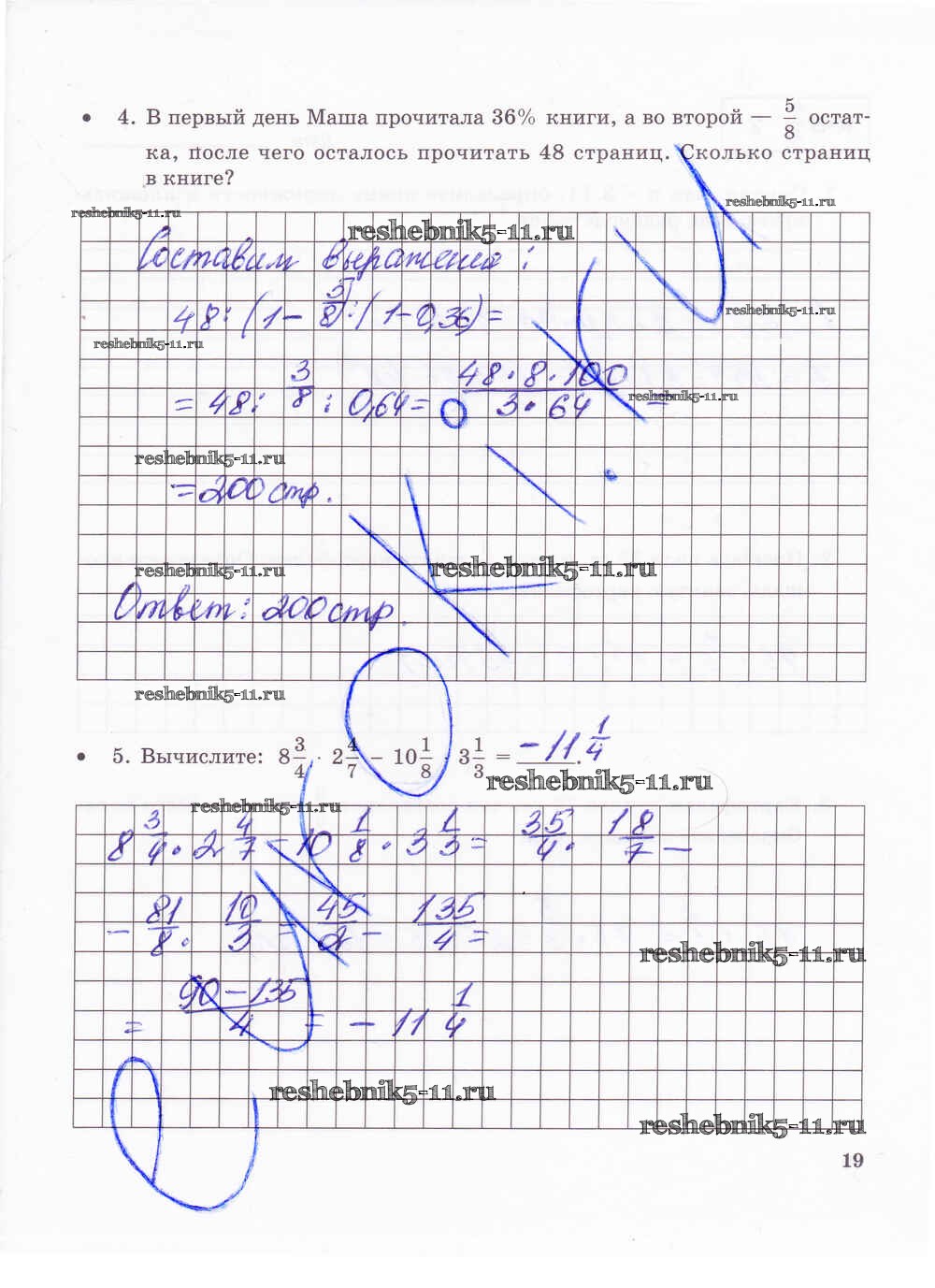 Готовая домашняя работа с ответами по Математике за 6 класс Зубарева, Лепешонкова Тетрадь для контрольных работ Часть 1, 2 Мнемозина 2020 ФГОС - Часть 2. Страницы 19