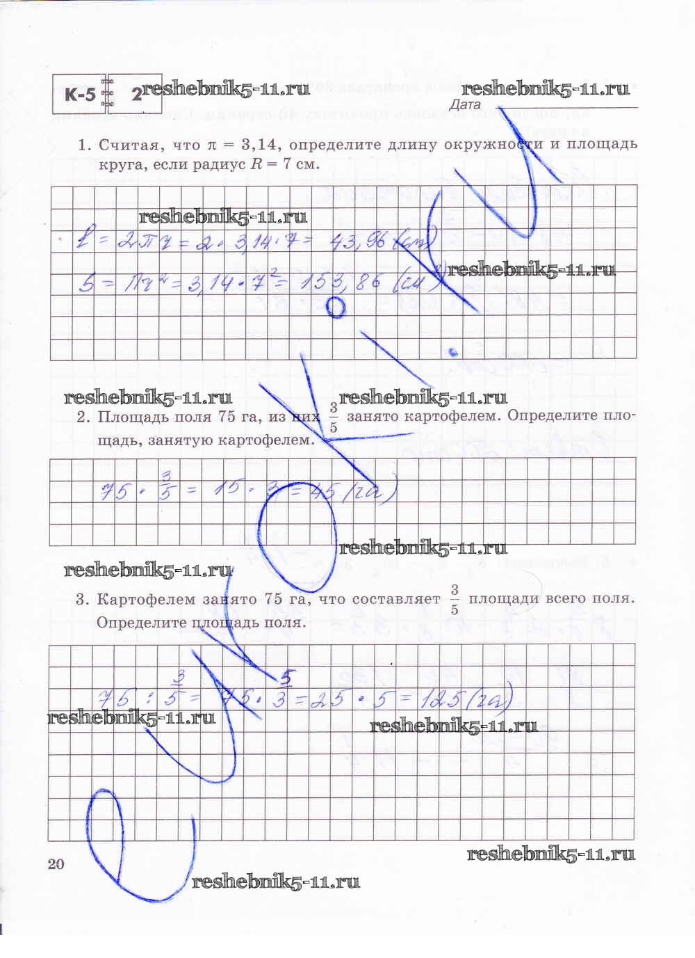 Математика за 6 класс Зубарева Тетрадь для контрольных работ Мнемозина часть 2. страница 20