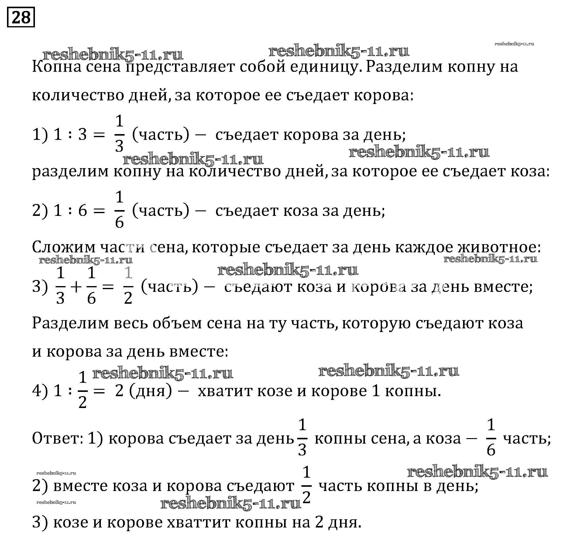 Готовая домашняя работа с ответами по Математике за 6 класс Бунимович, Кузнецова, Минаева, Рослова Учебник Сферы Просвещение 2019 ФГОС - Упражнения 28