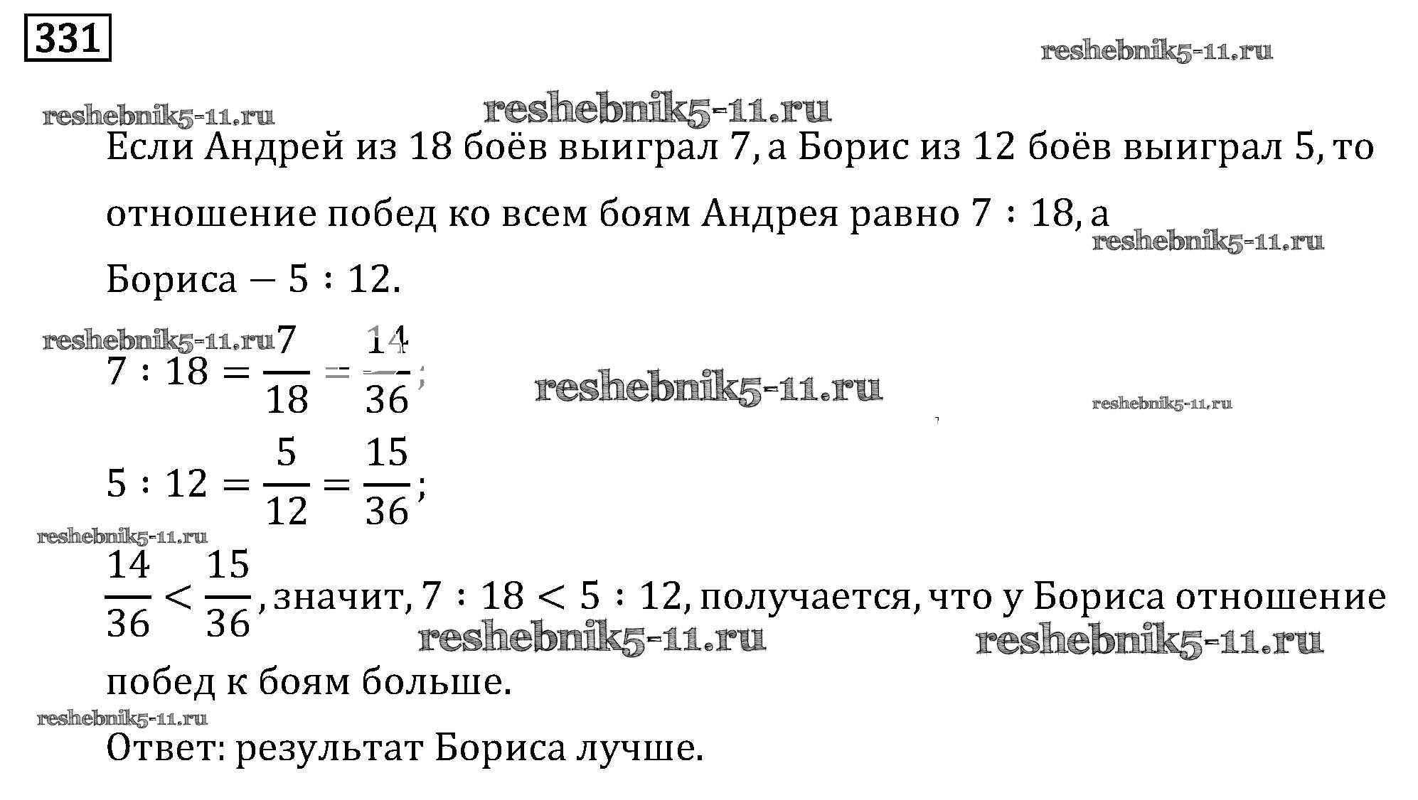 Готовая домашняя работа с ответами по Математике за 6 класс Бунимович, Кузнецова, Минаева, Рослова Учебник Сферы Просвещение 2019 ФГОС - Упражнения 331
