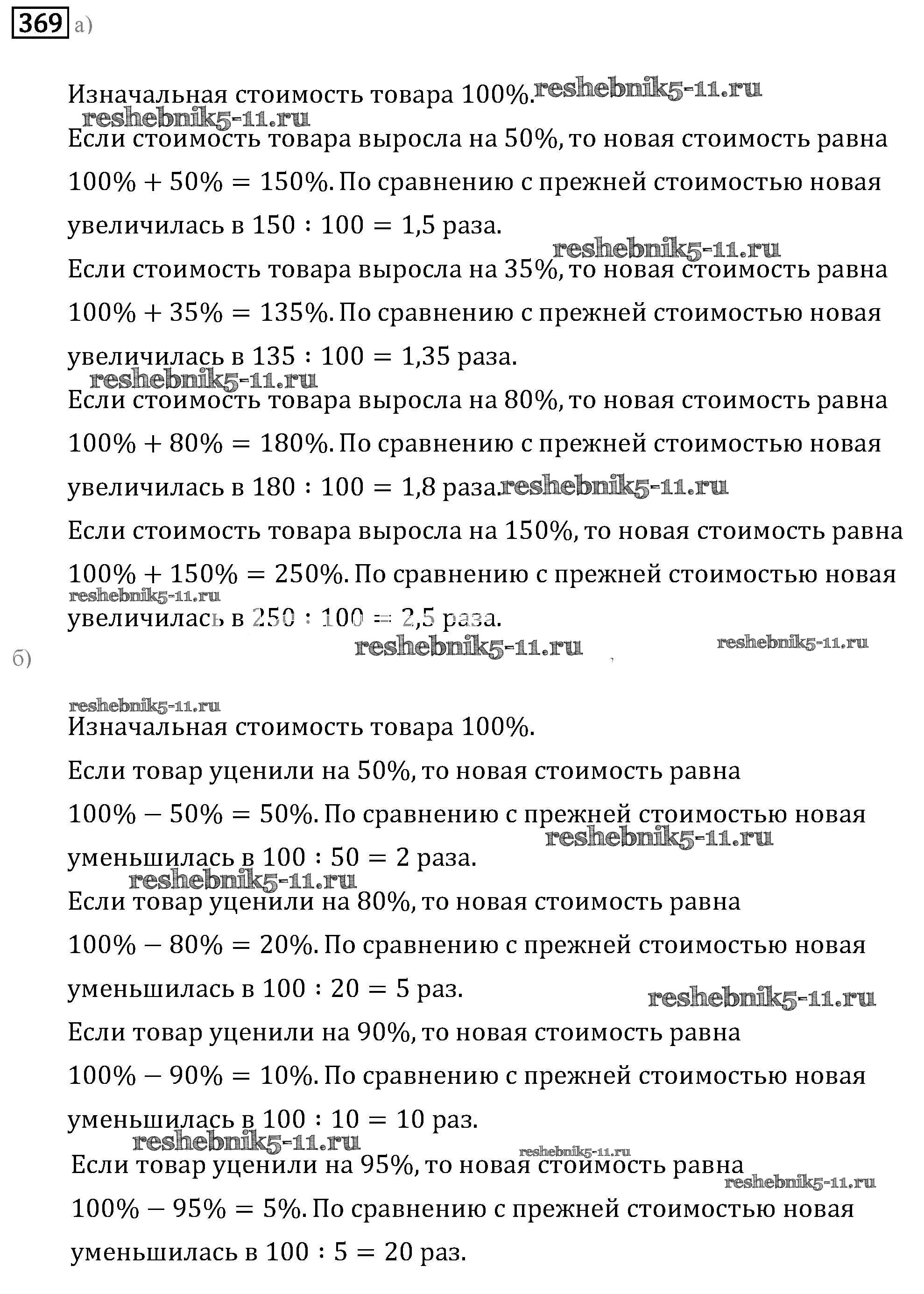 Готовая домашняя работа с ответами по Математике за 6 класс Бунимович, Кузнецова, Минаева, Рослова Учебник Сферы Просвещение 2019 ФГОС - Упражнения 369