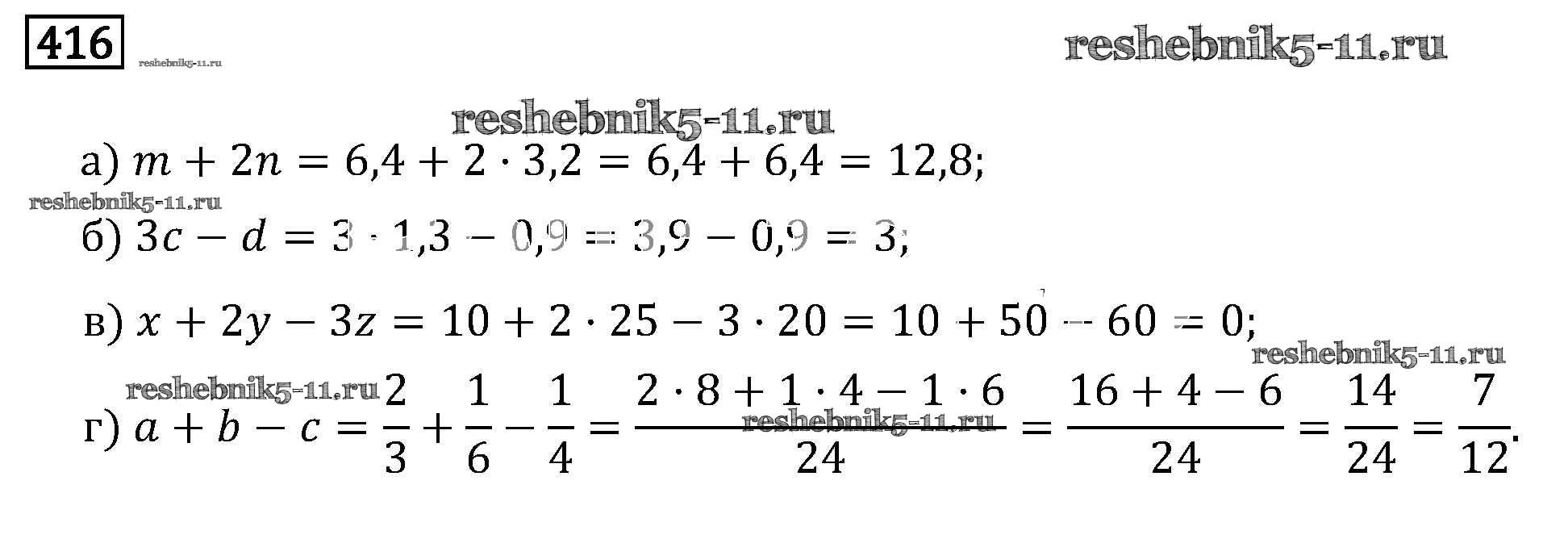 Готовая домашняя работа с ответами по Математике за 6 класс Бунимович, Кузнецова, Минаева, Рослова Учебник Сферы Просвещение 2019 ФГОС - Упражнения 416