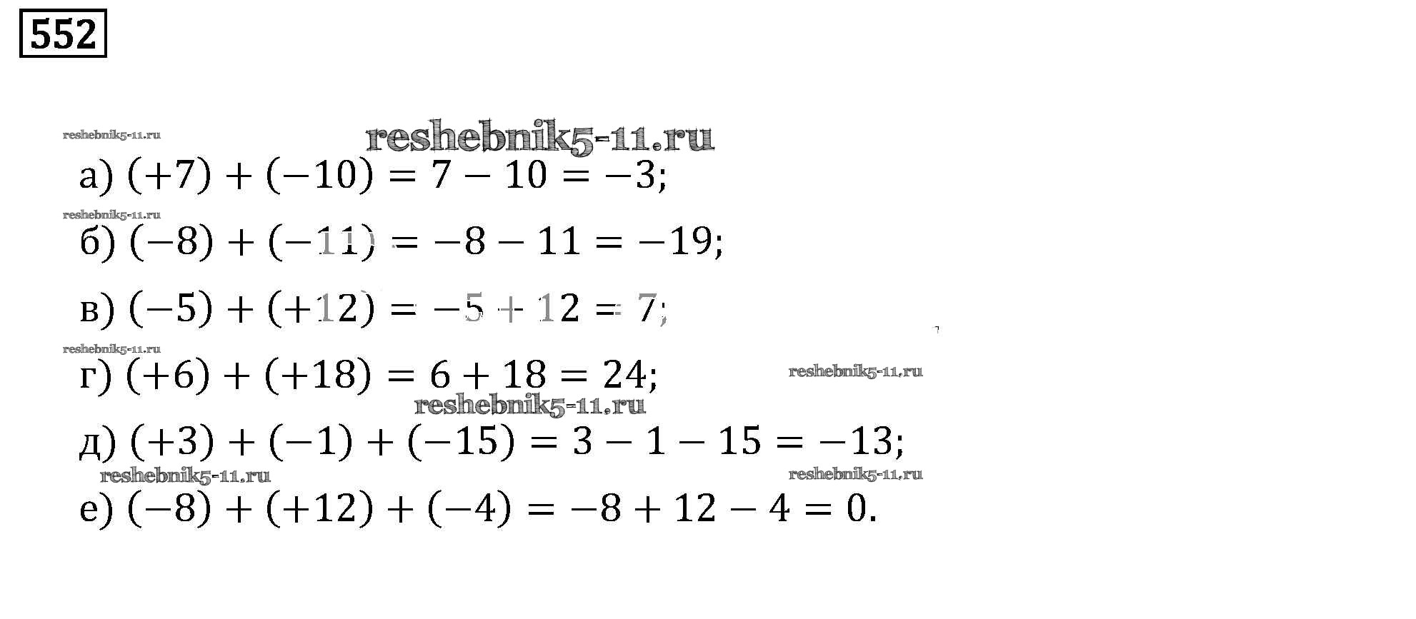 Готовая домашняя работа с ответами по Математике за 6 класс Бунимович, Кузнецова, Минаева, Рослова Учебник Сферы Просвещение 2019 ФГОС - Упражнения 552