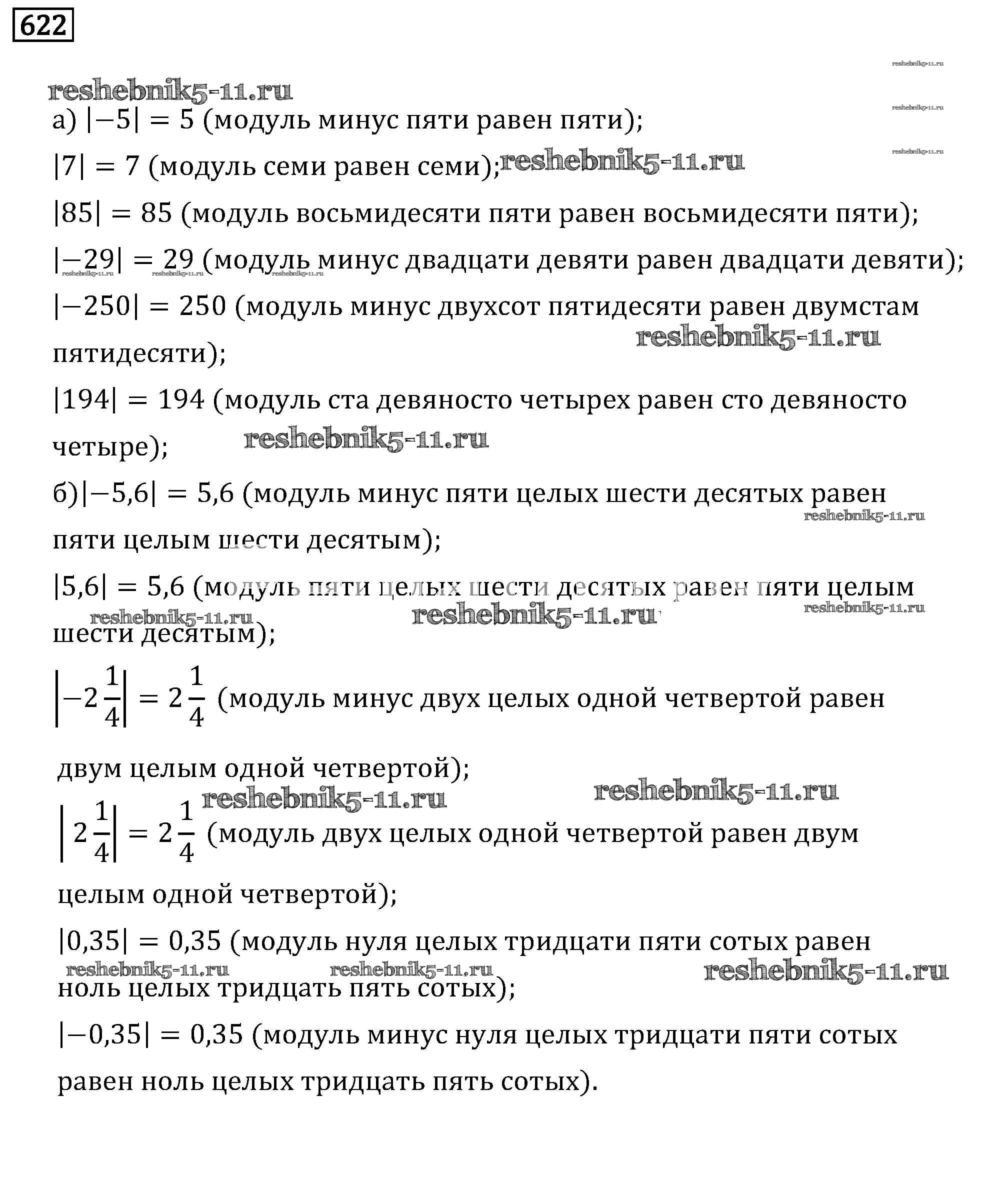 Готовая домашняя работа с ответами по Математике за 6 класс Бунимович, Кузнецова, Минаева, Рослова Учебник Сферы Просвещение 2019 ФГОС - Упражнения 622