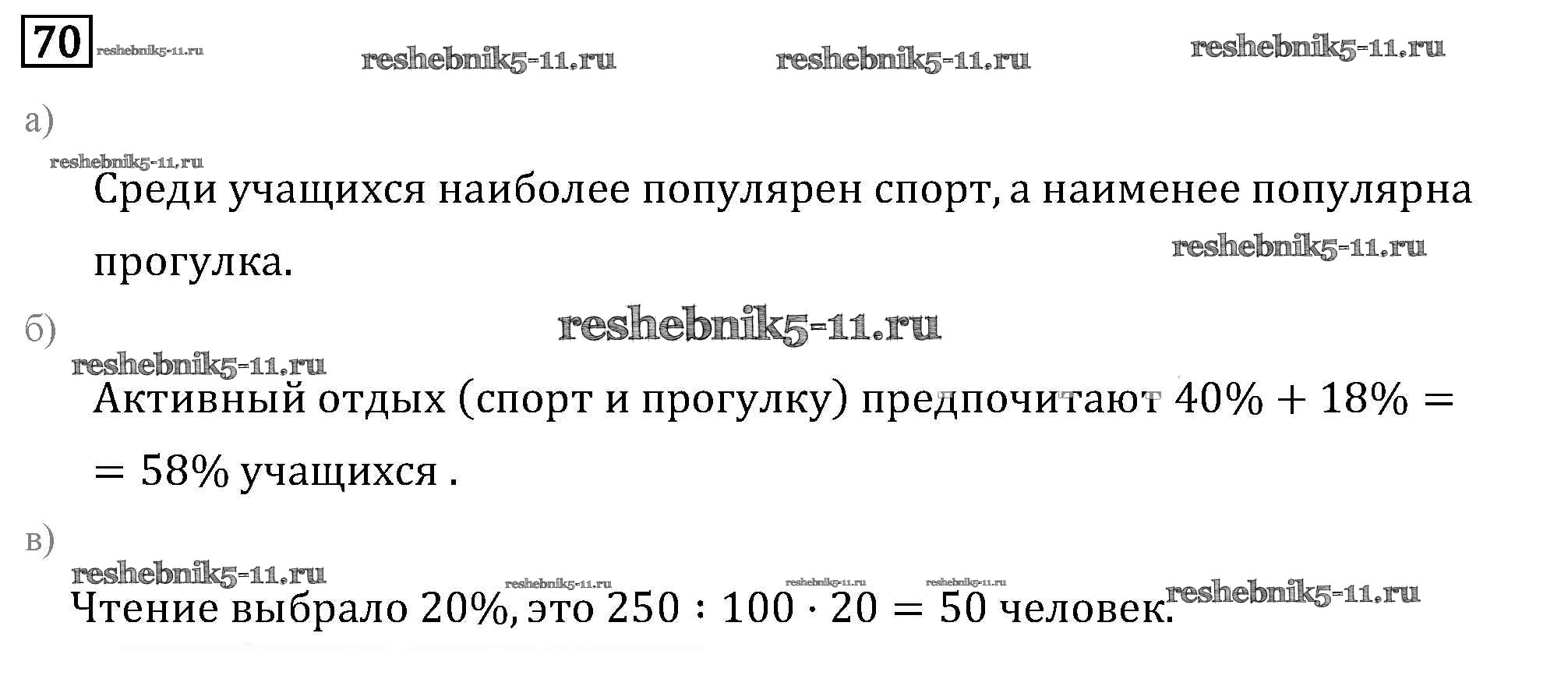 Готовая домашняя работа с ответами по Математике за 6 класс Бунимович, Кузнецова, Минаева, Рослова Учебник Сферы Просвещение 2019 ФГОС - Упражнения 70