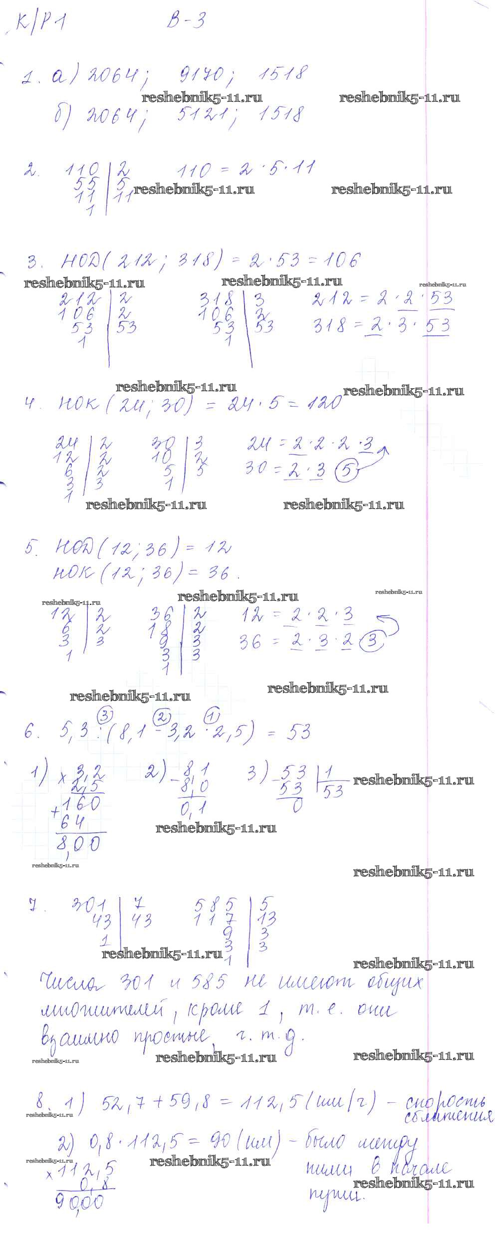 Готовая домашняя работа с ответами по Математике за 6 класс Дудницын, Кронгауз Контрольные работы УМК Экзамен 2013 ФГОС - КР-1. Варианты 3
