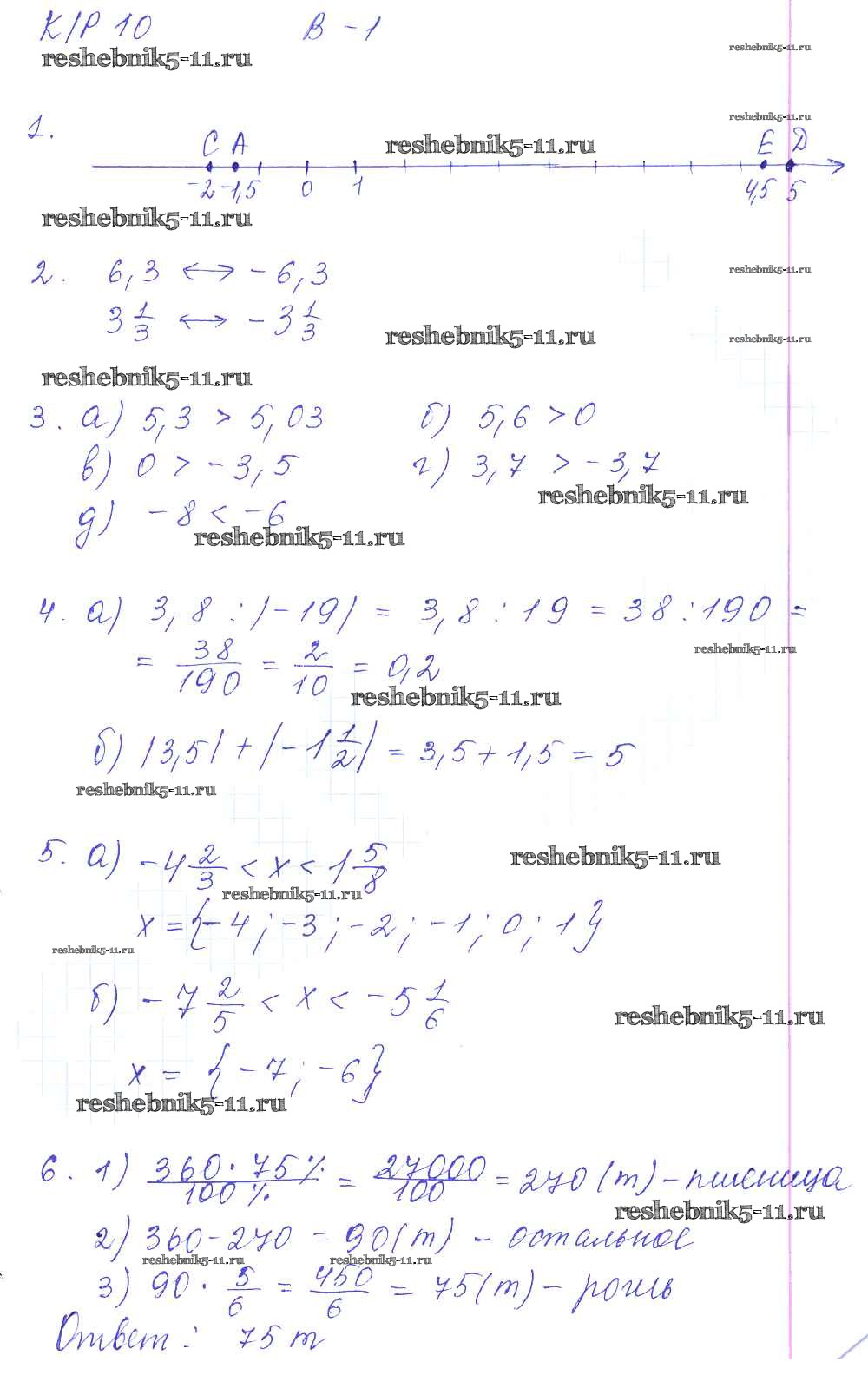 Готовая домашняя работа с ответами по Математике за 6 класс Дудницын, Кронгауз Контрольные работы УМК Экзамен 2013 ФГОС - КР-10. Варианты 1