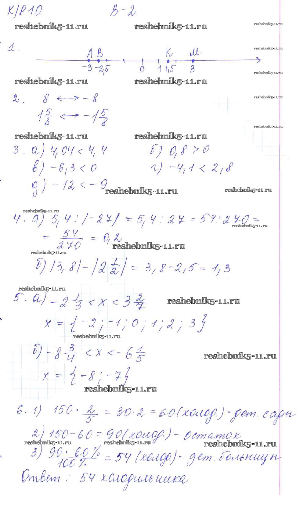 Готовая домашняя работа с ответами по Математике за 6 класс Дудницын, Кронгауз Контрольные работы УМК Экзамен 2013 ФГОС - КР-10. Варианты 2