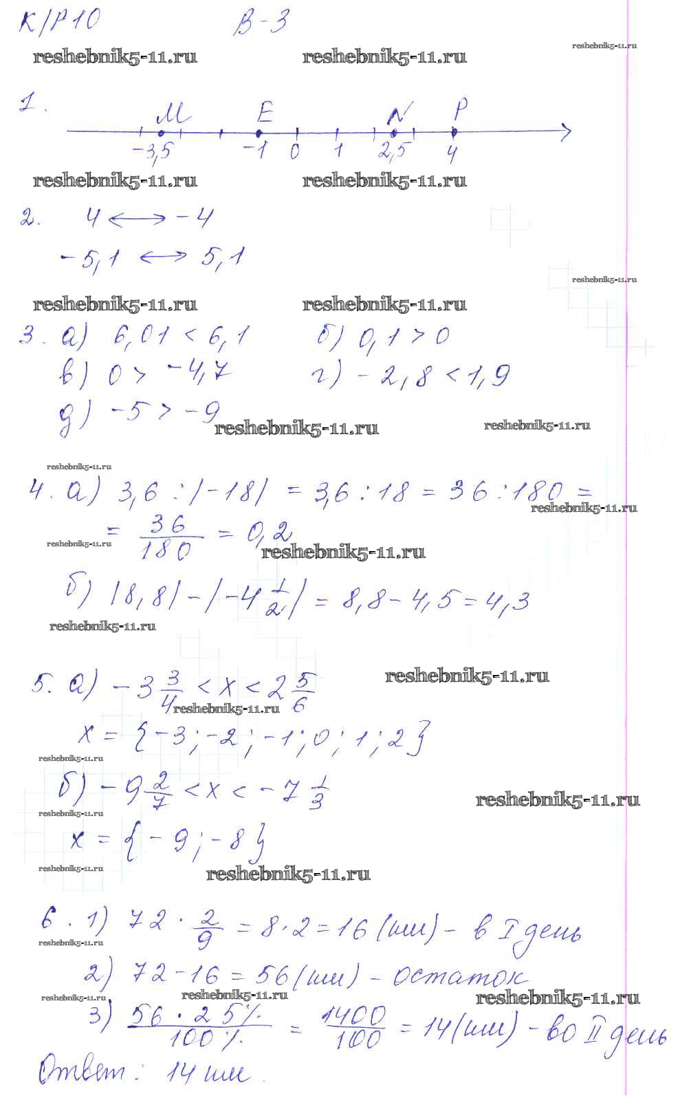 Готовая домашняя работа с ответами по Математике за 6 класс Дудницын, Кронгауз Контрольные работы УМК Экзамен 2013 ФГОС - КР-10. Варианты 3