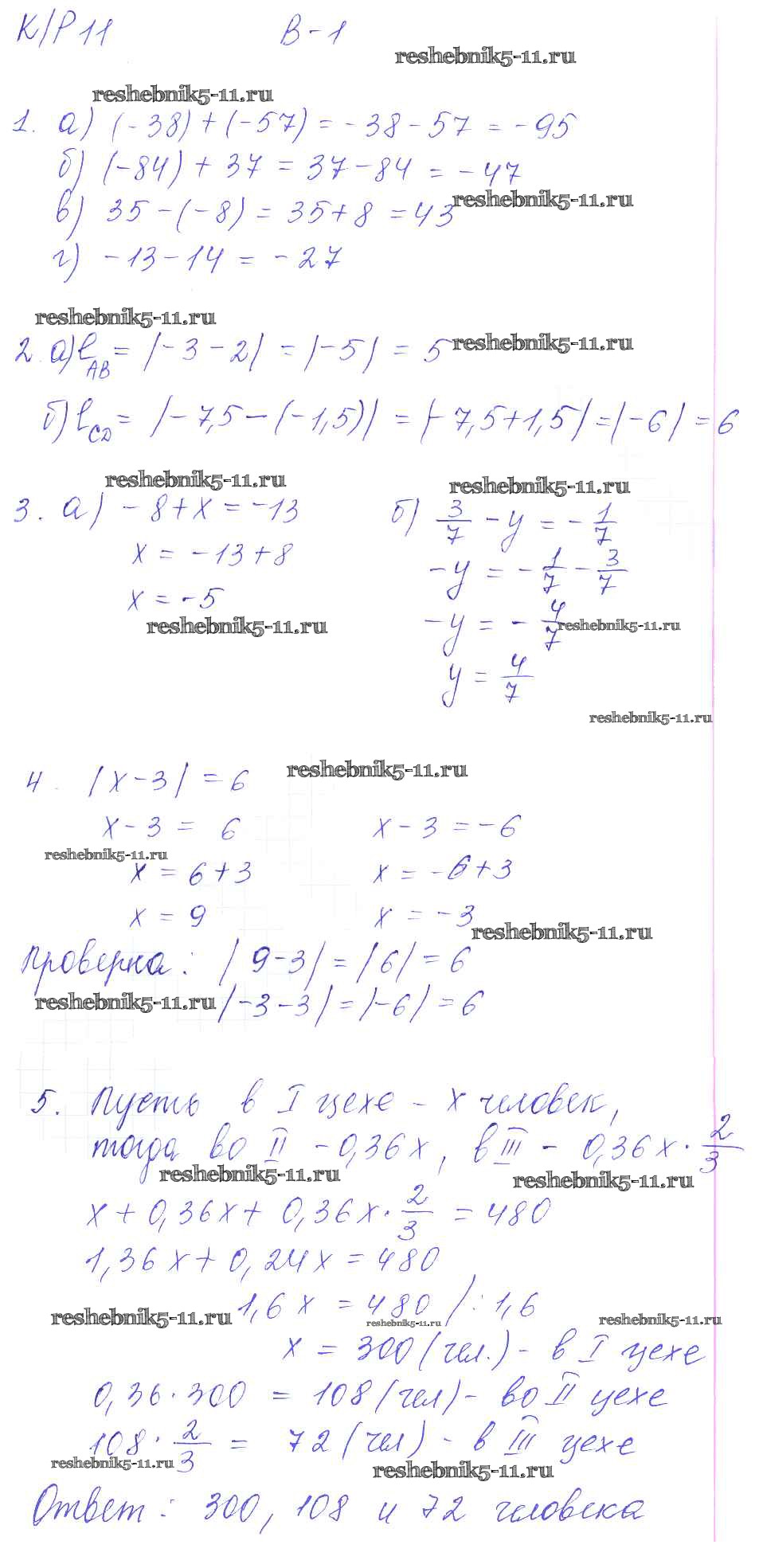 Готовая домашняя работа с ответами по Математике за 6 класс Дудницын, Кронгауз Контрольные работы УМК Экзамен 2013 ФГОС - КР-11. Варианты 1