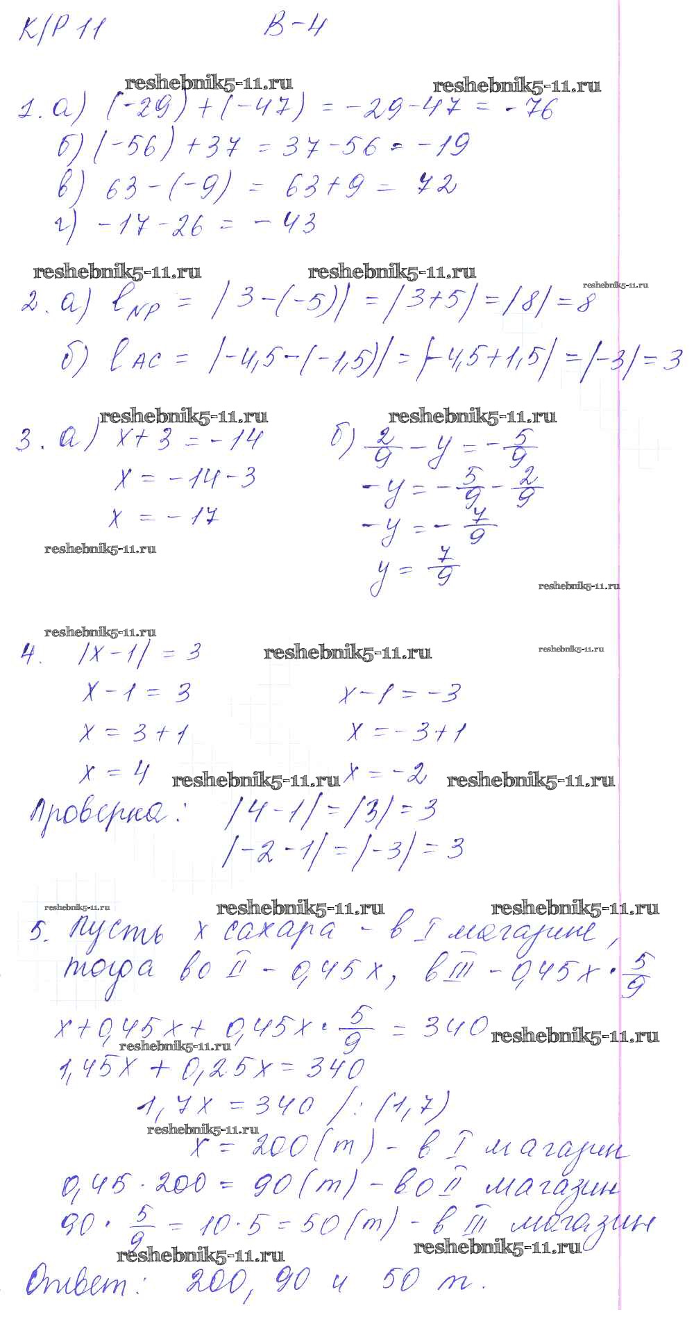 Готовая домашняя работа с ответами по Математике за 6 класс Дудницын, Кронгауз Контрольные работы УМК Экзамен 2013 ФГОС - КР-11. Варианты 4