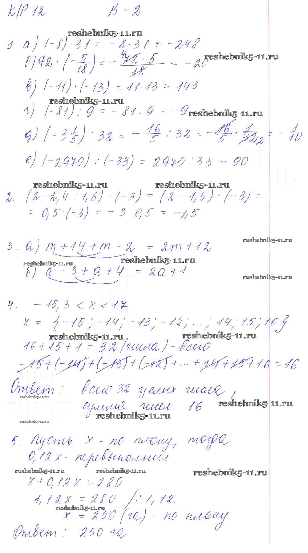 Готовая домашняя работа с ответами по Математике за 6 класс Дудницын, Кронгауз Контрольные работы УМК Экзамен 2013 ФГОС - КР-12. Варианты 2