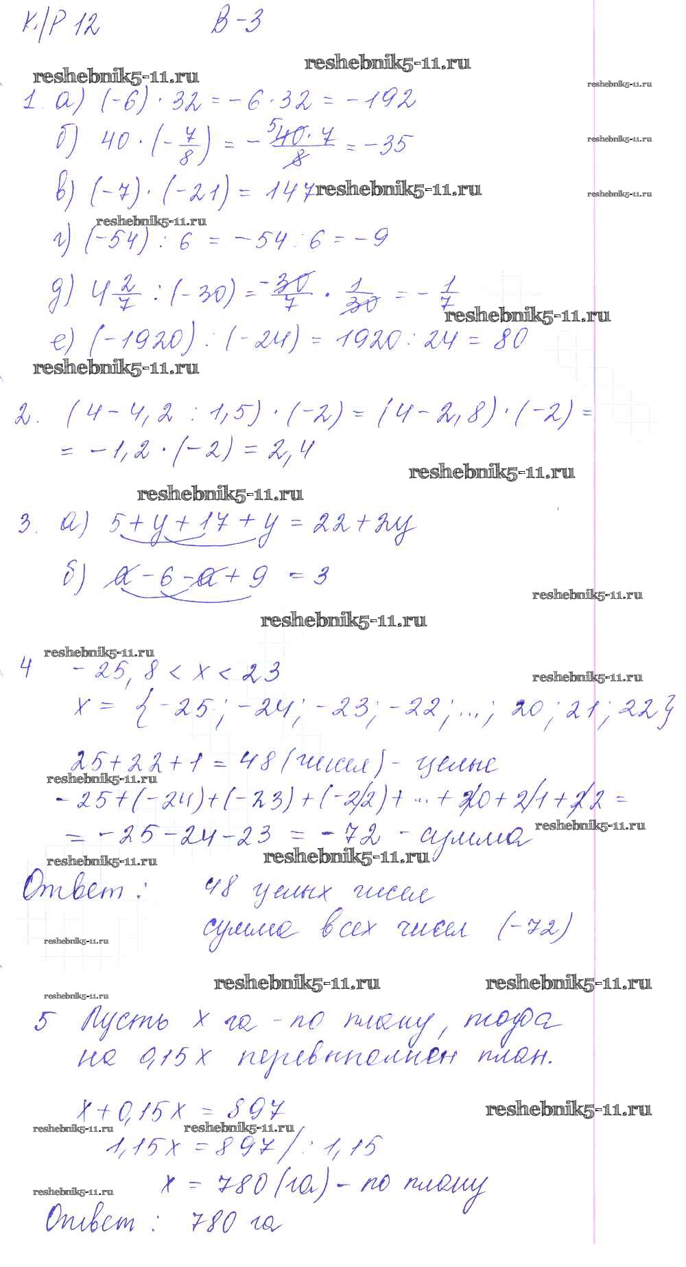 Готовая домашняя работа с ответами по Математике за 6 класс Дудницын, Кронгауз Контрольные работы УМК Экзамен 2013 ФГОС - КР-12. Варианты 3