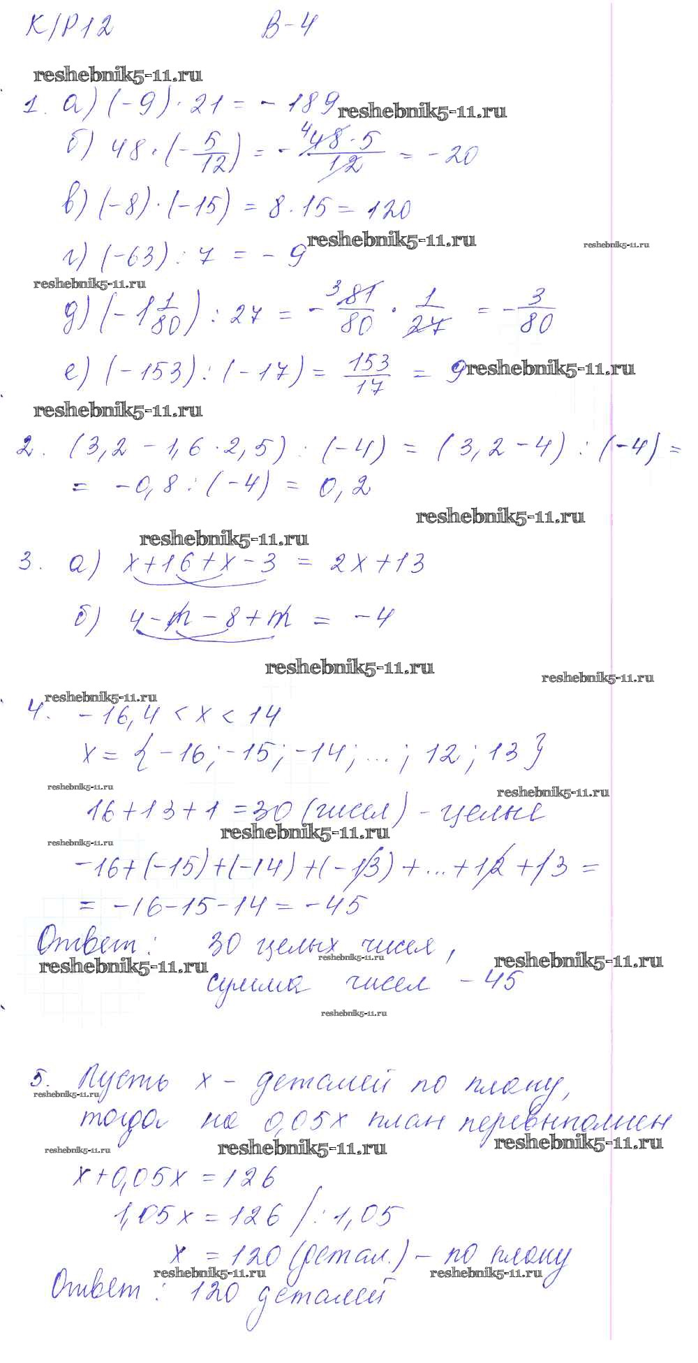 Готовая домашняя работа с ответами по Математике за 6 класс Дудницын, Кронгауз Контрольные работы УМК Экзамен 2013 ФГОС - КР-12. Варианты 4