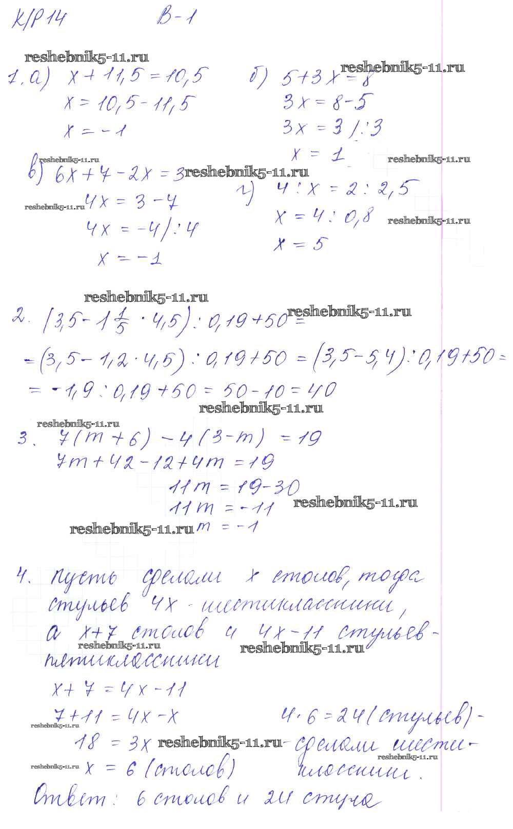 Математика за 6 класс Дудницын Контрольные работы УМК Экзамен кр-14. вариант 1