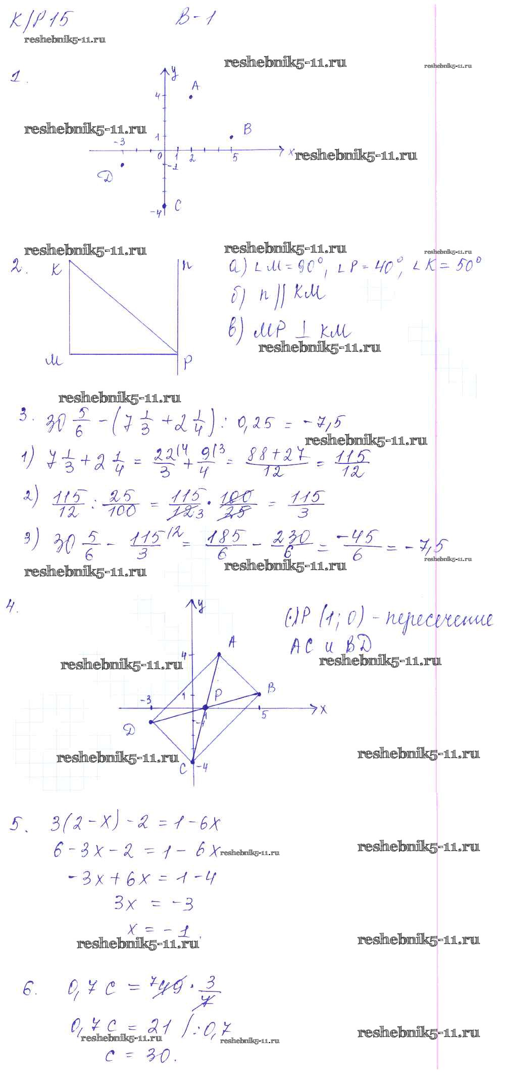Готовая домашняя работа с ответами по Математике за 6 класс Дудницын, Кронгауз Контрольные работы УМК Экзамен 2013 ФГОС - КР-15. Варианты 1