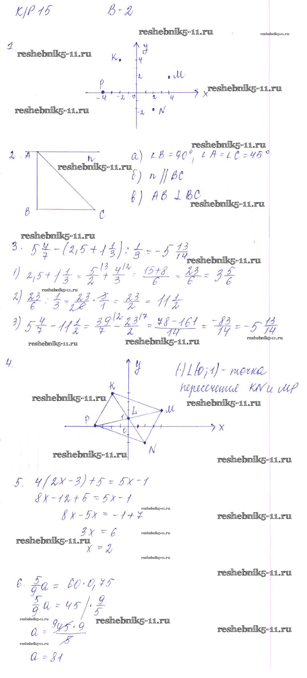 Готовая домашняя работа с ответами по Математике за 6 класс Дудницын, Кронгауз Контрольные работы УМК Экзамен 2013 ФГОС - КР-15. Варианты 2