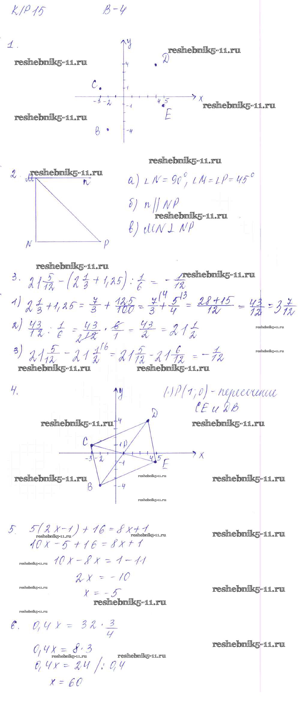 Готовая домашняя работа с ответами по Математике за 6 класс Дудницын, Кронгауз Контрольные работы УМК Экзамен 2013 ФГОС - КР-15. Варианты 4