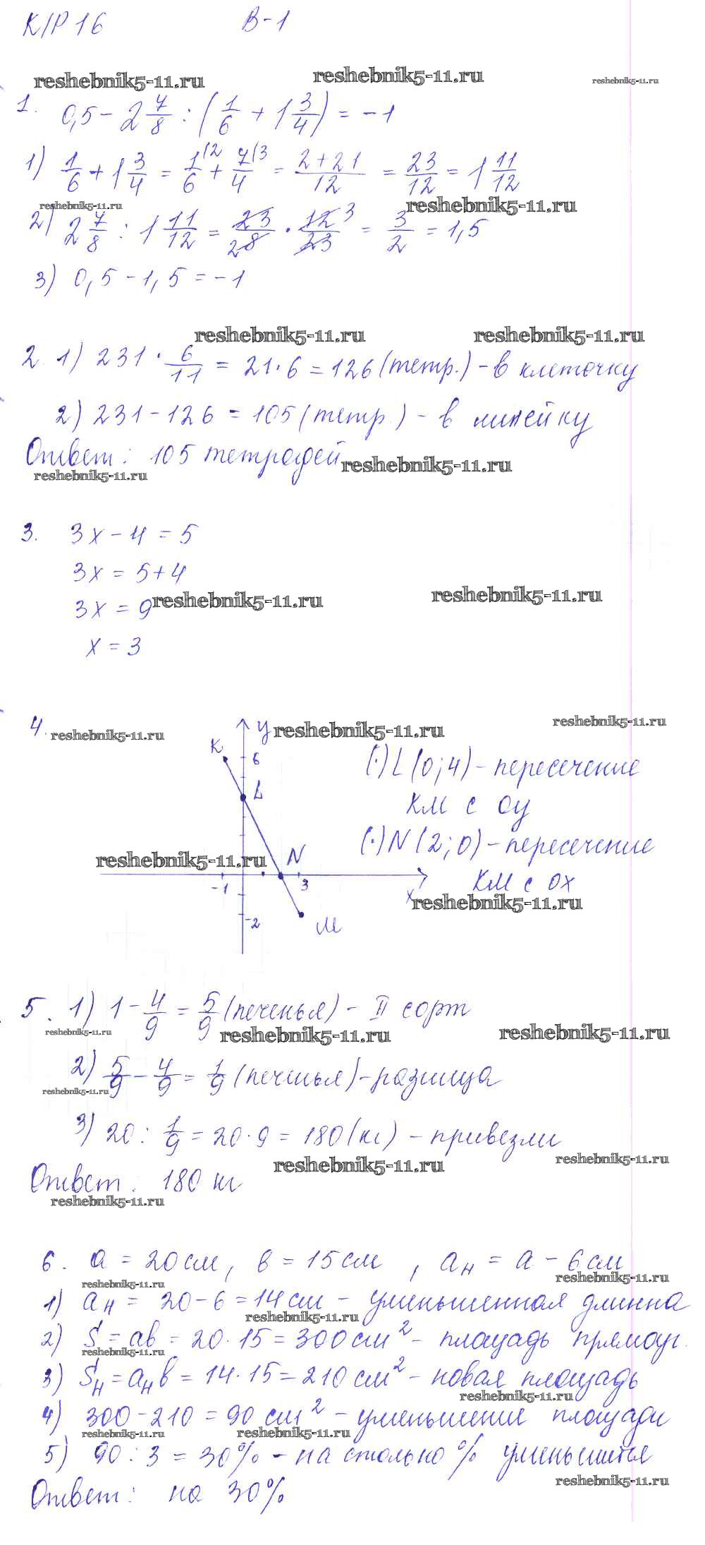 Готовая домашняя работа с ответами по Математике за 6 класс Дудницын, Кронгауз Контрольные работы УМК Экзамен 2013 ФГОС - КР-16. Варианты 1