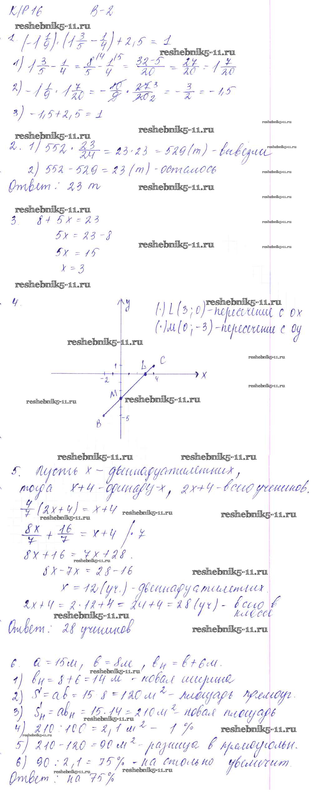 Готовая домашняя работа с ответами по Математике за 6 класс Дудницын, Кронгауз Контрольные работы УМК Экзамен 2013 ФГОС - КР-16. Варианты 2