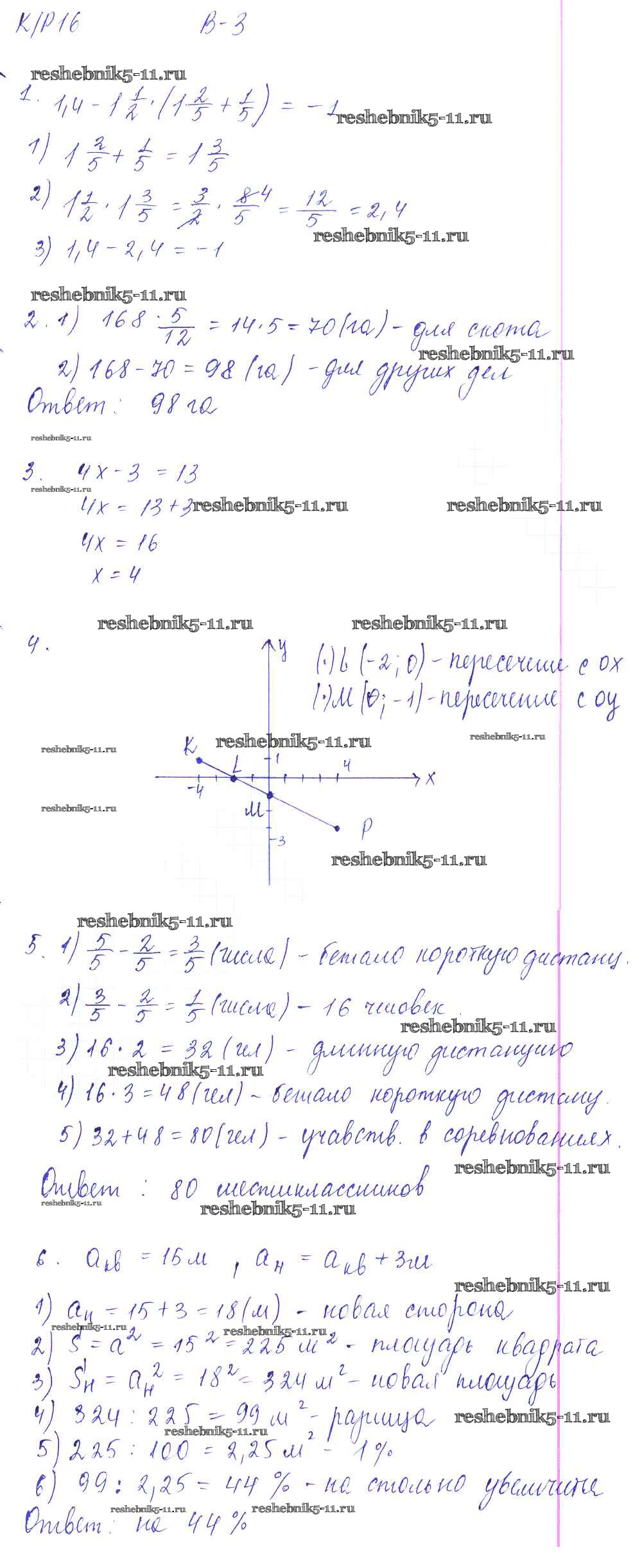 Готовая домашняя работа с ответами по Математике за 6 класс Дудницын, Кронгауз Контрольные работы УМК Экзамен 2013 ФГОС - КР-16. Варианты 3