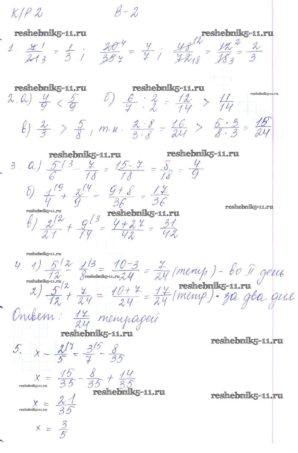 Готовая домашняя работа с ответами по Математике за 6 класс Дудницын, Кронгауз Контрольные работы УМК Экзамен 2013 ФГОС - КР-2. Варианты 2