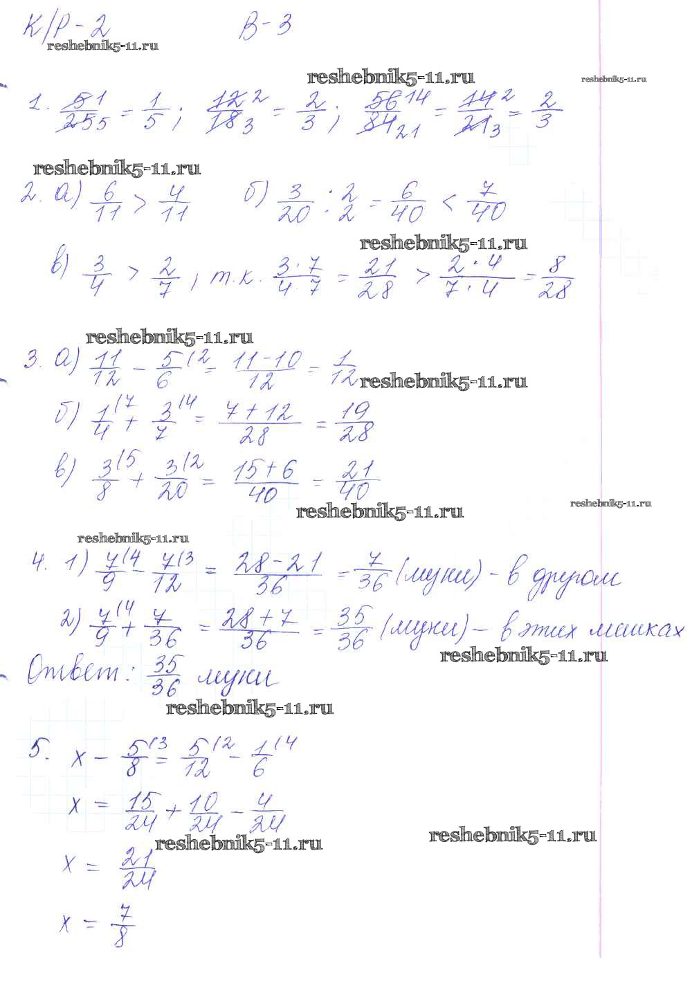 Готовая домашняя работа с ответами по Математике за 6 класс Дудницын, Кронгауз Контрольные работы УМК Экзамен 2013 ФГОС - КР-2. Варианты 3
