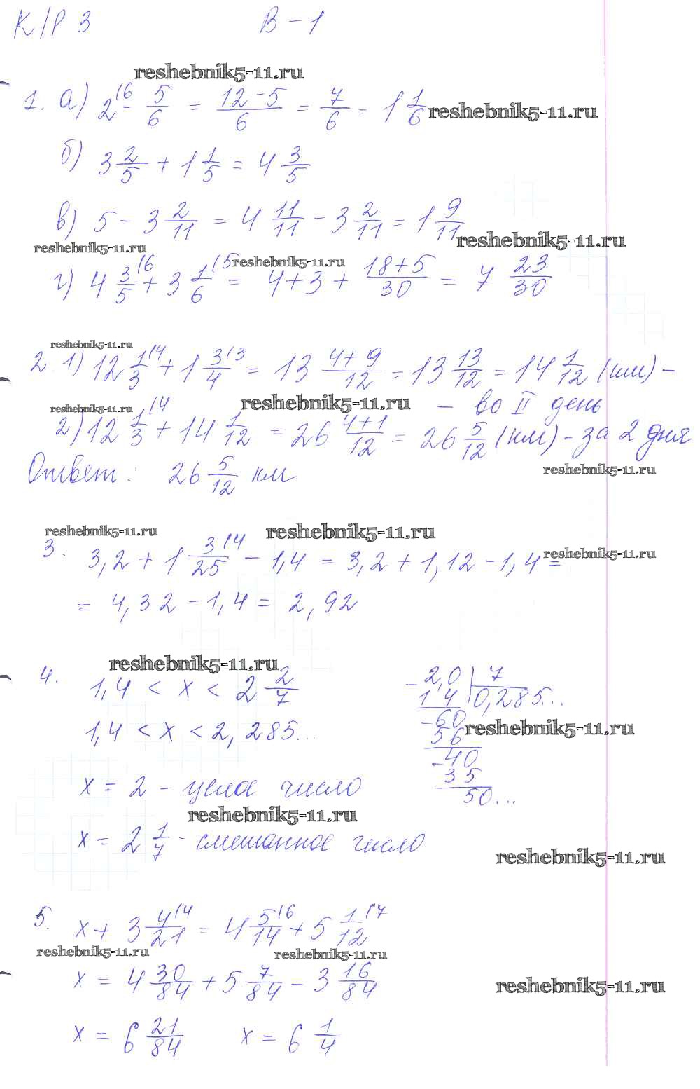 Готовая домашняя работа с ответами по Математике за 6 класс Дудницын, Кронгауз Контрольные работы УМК Экзамен 2013 ФГОС - КР-3. Варианты 1