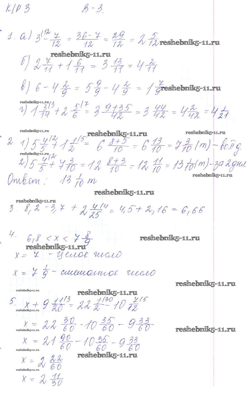 Готовая домашняя работа с ответами по Математике за 6 класс Дудницын, Кронгауз Контрольные работы УМК Экзамен 2013 ФГОС - КР-3. Варианты 3