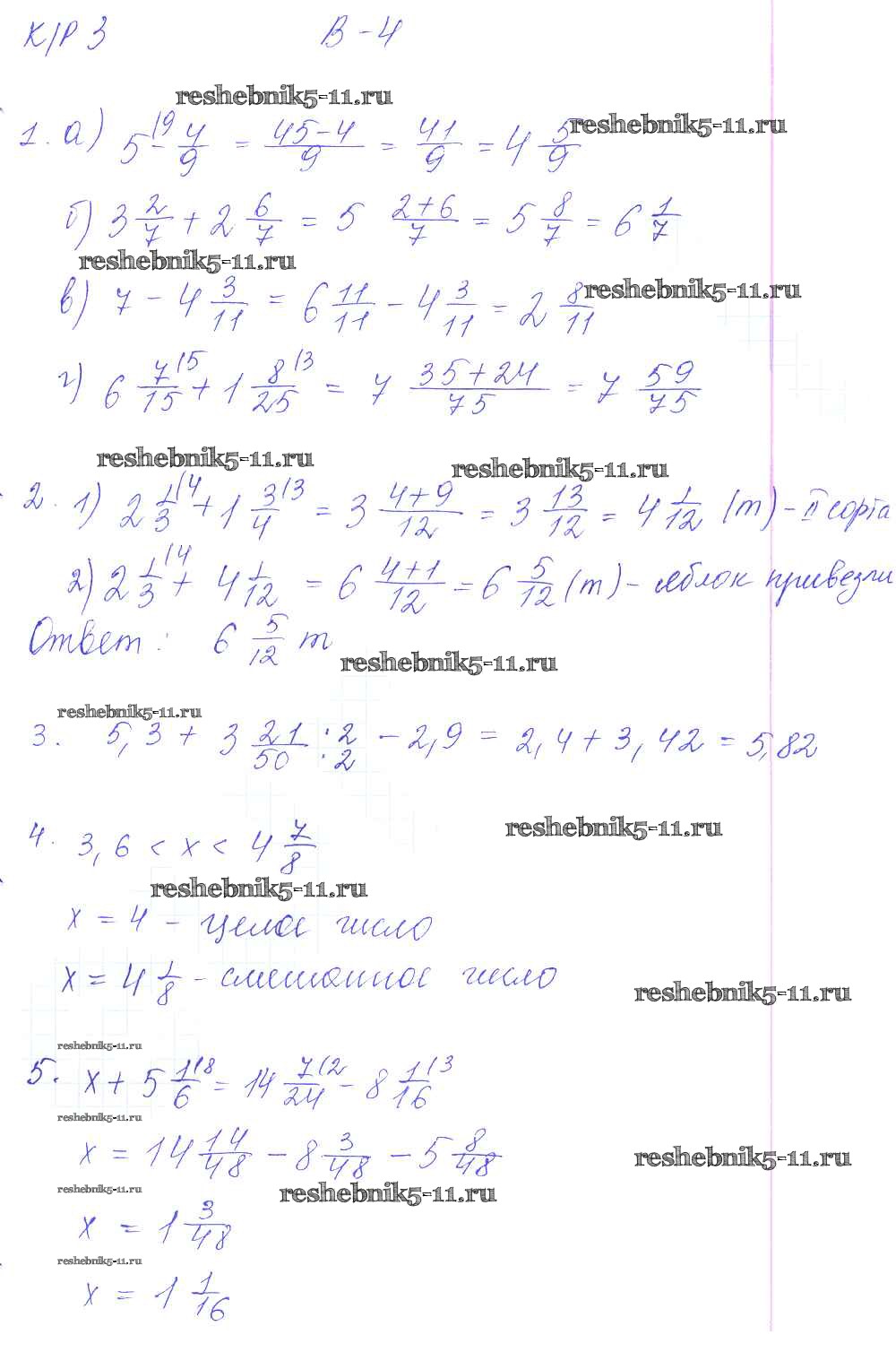 Готовая домашняя работа с ответами по Математике за 6 класс Дудницын, Кронгауз Контрольные работы УМК Экзамен 2013 ФГОС - КР-3. Варианты 4